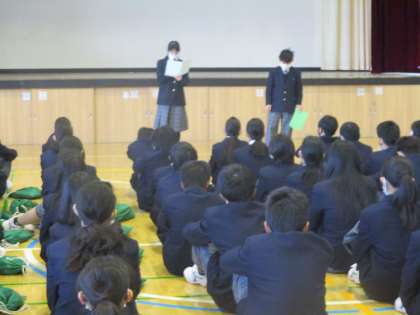 学級委員の進行で、各学級、学年全体で今学期を振り返りました。