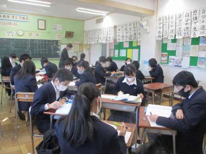 土曜授業です。残念ながら、学運協の方の参観は中止となってしまいましたが、生徒の皆さんはいつもどおりよく取り組んでいます。