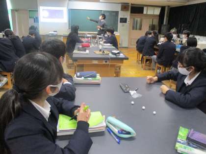 3年理科 月食を模型を使って理解。赤く見える月の話など楽しく学習。