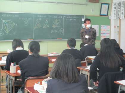 3年数学 空間図形を見ながら面積を出したり・・・、集中のひと時。
