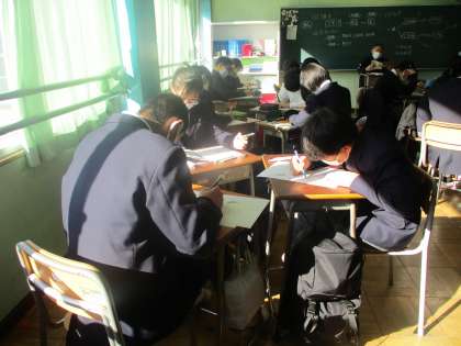 2年理科 「人体」ダイアモンド型の机の並べ方がどの学年、どの教科でも定着しつつあります。