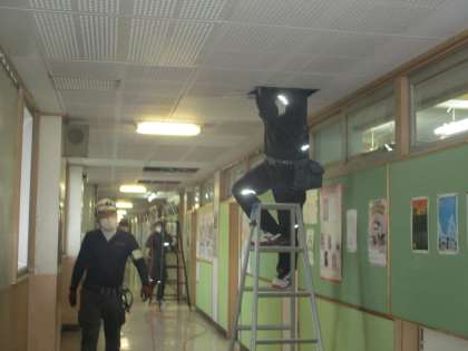 GIGAスクール構想に向けてタブレットPCを校内のどこでも使えるようにLANケーブルの設置工事をしてくださっています。楽しみですね!