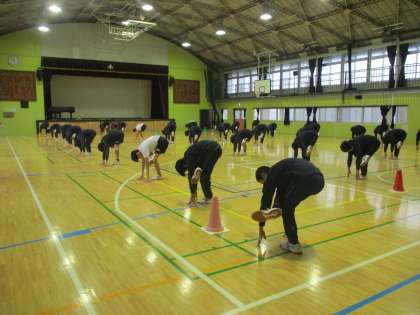 2年体育 球技の前にしっかりほぐしていました。