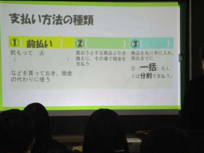 3年家庭科 将来役に立つ支払いの方法等。