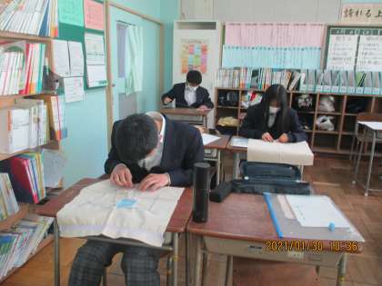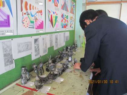 美術 学習発表会に向け作品が出来上がってきています。発表会までには何とか感染症拡大が収まり、より多くの方にみていただきたいものです。