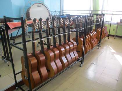 音楽室にはギターを増やして、1クラス分に。一人一台で練習できます。琴も数台、増やしました。保護者の方からも大切にされていた1台を寄贈いただきました。ありかとうございました。