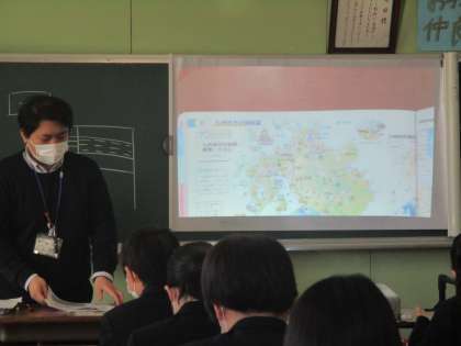 3年生のフロア、「受験は団体戦」ということでどのクラスもみんな穏やかに学習しています。プロジェクター、実物投影機、デジタル教科書(英語)も日常化してきました。