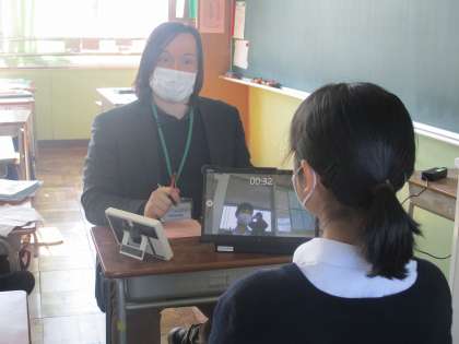 1年英語  ALTの先生によるスピーキングテスト。ICTも活用して進化中。
