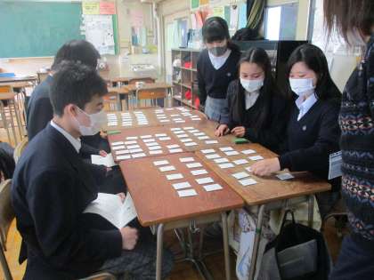 5組 百人一首、秒速でとれる生徒もいました。