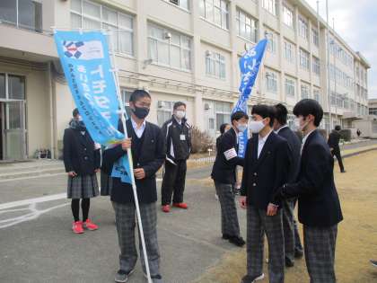 8日はあいさつ運動の日、生徒会が一緒にあいさつ運動をしてくれる生徒を募集してくれたところ、8時前にはこんなに集合してくれました。