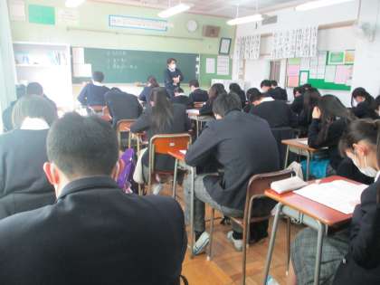 3年 2時間目、入試模擬問題をがんばっているクラス、集中力が素晴らしいです。