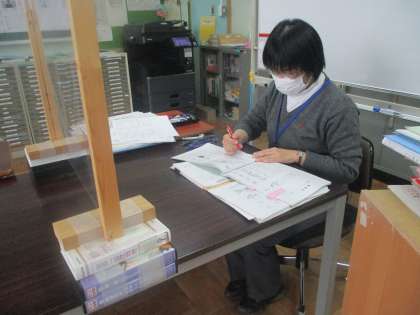 日本語通級学級 雨の中、今日も他校の生徒が遠くから通学してきて頑張っています。まずは宿題の〇付けから。