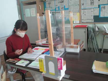 日本語学級 一人一人、在籍校の学級担任の先生との連絡帳を確認をしながら指導を行っていました。