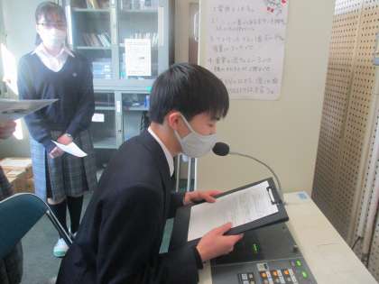 感染症予防のため、生徒会朝礼も放送で行いました。