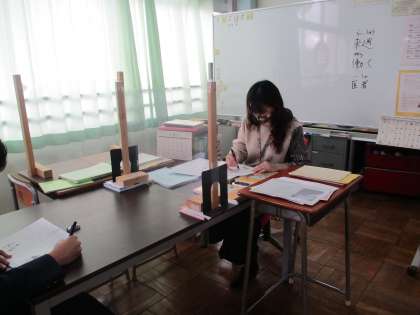 日本語学級 漢字の〇付けをしてもらっていました。宿題を含めたくさん練習することが上達の秘訣ですね。