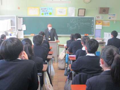 3年数学 いつもお世話になっているアシスタントティーチャーのスマホ通信の仕組みなど、専門家ならではの講話。