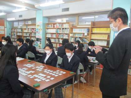 日本語学級 ひな祭りの話題でお話。お話をする中で言葉を覚えていきます。覚えた助詞をカードで確認。
