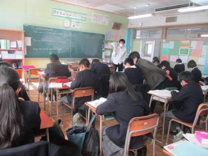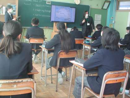 「使える英語」を目指して、教科書を何度も音読して基礎固め、ALTと先生の会話を聞いて、その話に一緒に加わったりして応用、熱心に頑張る生徒の皆さん。
