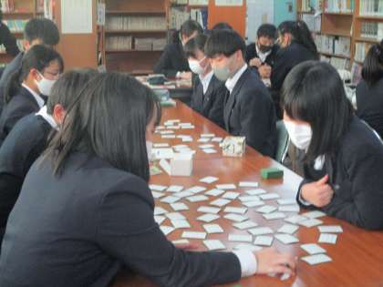 3年国語 百人一首、歓声が上がるほどの盛り上がり。