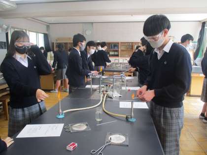 3年理科 ガラスをバーナーで熱してガラス細工。
