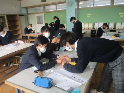 2年家庭科編み物 学び合いの素敵な姿、発見。 2年理科 ICTを使って調べ学習。