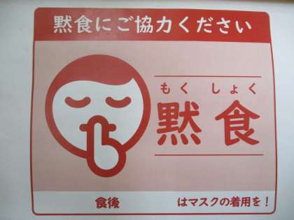 昼食は「黙食」、給食主任の先生がポスターを張ってくれました。
