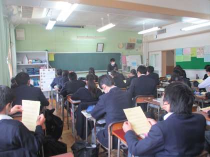6組 人の話を聴く態度、背筋を伸ばして座る姿勢等、中学校生活だけではなく将来に向けての大切なマナーの話。