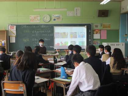4時間目は連携教職大学院の先生と実習生(数学科、1年学級主任クラス所属予定)にお越しいただいたので、せっかくなのでということで全クラスを紹介してまわりました。