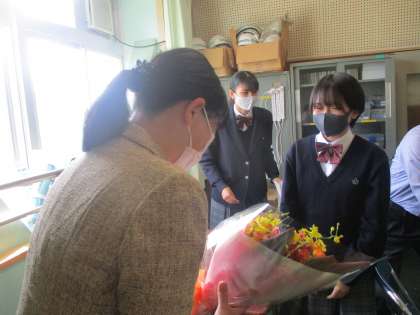 離任された先生のお話にあったように、中学生の皆さんには人と人の出会いを大切に、1日1日を大切に、後で振り返った中学校時代が実りあるものであってほしいと思いました。