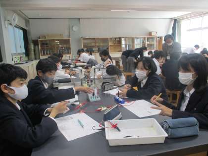 2年理科 電流計。だんだん内容が抽象化して難しくなってきましたが、楽しそうに実験。