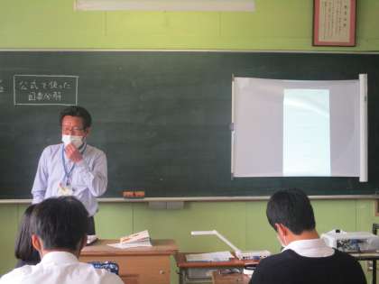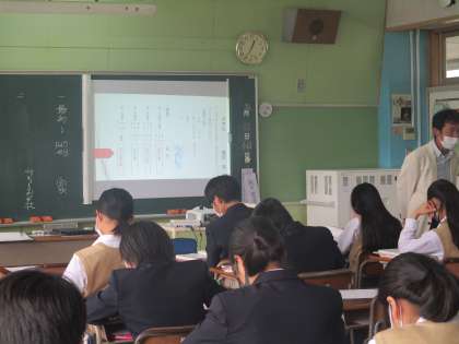 どの教室もプロジェクターかTVモニターを活用しているので、授業で何をやっているのか瞬時にわかり、教室巡りが楽しくて仕方ありません。おなかのすく時間でしたが、生徒の皆さんも熱心によく取り組んでいました。