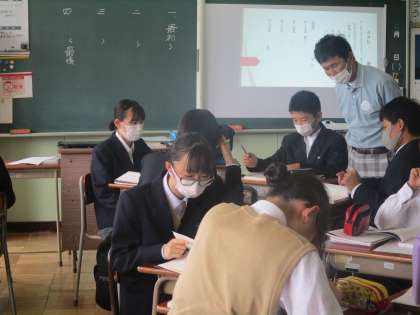 日本語学級 日本語を身に付けるために一生懸命な生徒の皆さんと励ます先生たち。