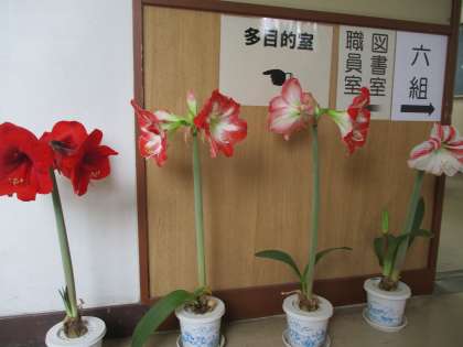 昨年度いただいた球根。1年限りと思われたのですが、特別支援教室の大久保先生が冬の間も大切にお世話をしてくださったので、こんなにきれいに。廊下や階段で今年も楽しませてもらっています。