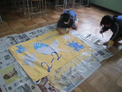 放課後は各教室で応援旗づくり、仲間との絆も深まります。