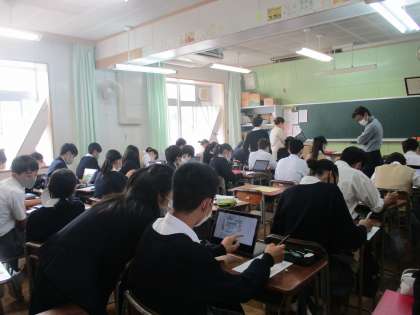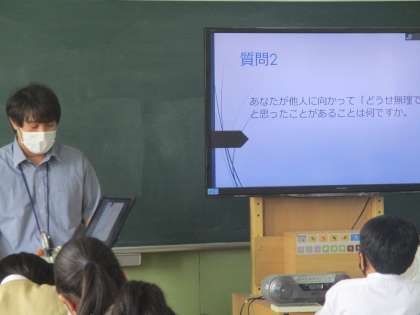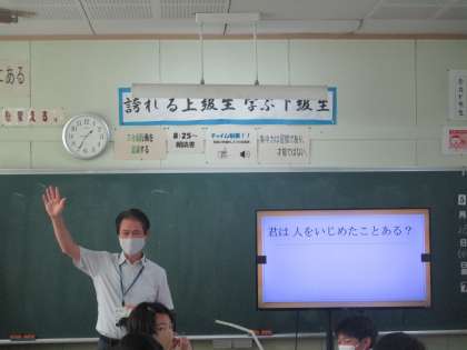 教科道徳は全ての先生がローテーションで実施、来月のふれあい月間前に「いじめとは」「いじり?いじめ?」といったテーマがあったり、「学び合い×ICT]の場面があったり。教育実習生ともすっかり馴染んでいる3年生のコミュニケーション力の高さに感心しました。