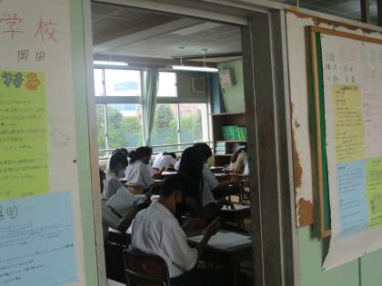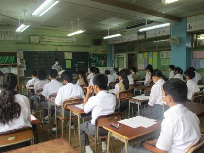 テスト用紙配布前、チャイムが鳴ったときの2年生の緊張のひと時。