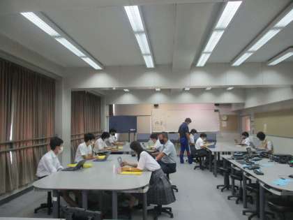 6組情報 改修中のアクティブ・ラーニングルームを使って学習。夏休み明けには明るくて楽しい部屋になっているはずです。