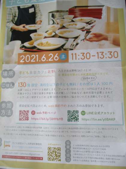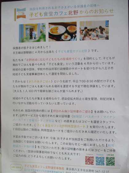 子供食堂カフェ北野からチラシをいただきました。