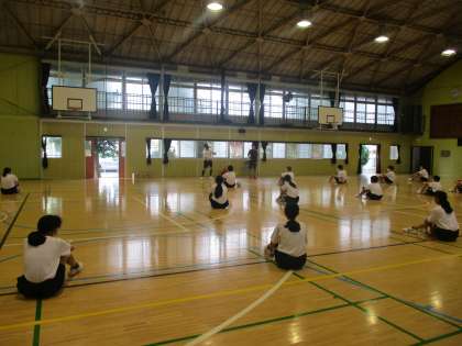 6組体育 ボールを使った体つくり。お手本を見て挑戦。