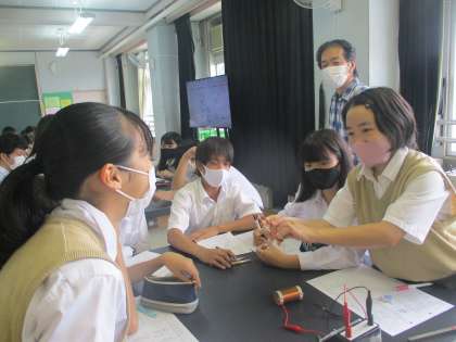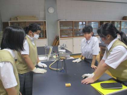 6組 理科の実験、ポップコーンのはじける大きな音にも動じない理科好きな生徒の皆さん。