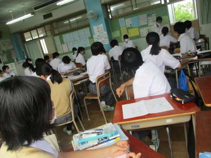 2年理科 あいさつも素晴らしいし、人の発表には体を向けて聴く姿勢も立派な2年生。