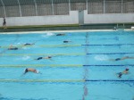 3年水泳 3階から見ると沖縄の海(行ったことはないですけれど)で泳いでいる魚に見えました。