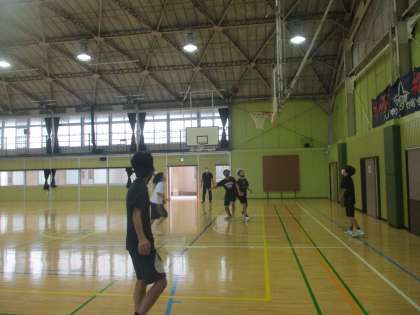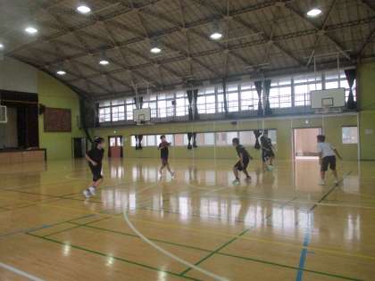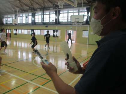 熱中症にならないように、、毎日、日直の先生が気温を図りながら部活動を実施しています。今はお盆前の暑さはなく、体育館も風が吹き抜け快適です。