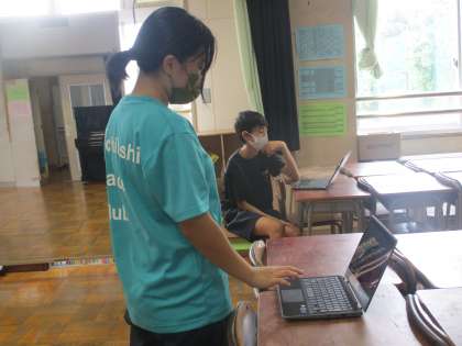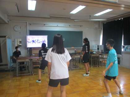 園芸部のゴーヤがなっていました。ダンス部はタブレットPCを使って、振り付けを考えるパートと振り付けを覚えるパートに分かれて活動中。