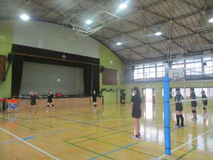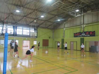 暑くてもあいさつさわやか、換気しっかり元気なバレーボール部の皆さん。