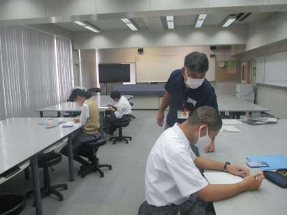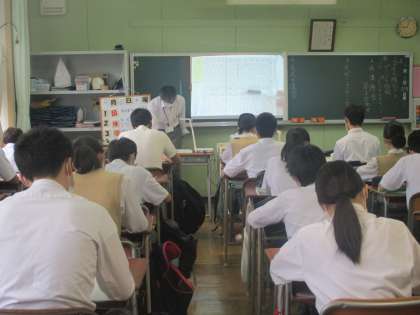 3年理科 新しい先生の授業。生徒の皆さんの聞く態度が素晴らしいです。