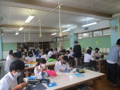 1年家庭科 黙々と素晴らしい集中力。