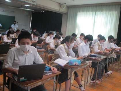 第2回校内研修としてただいま星野主幹教諭による授業を実施しています。3年生の保護者の皆様にも配信しています。