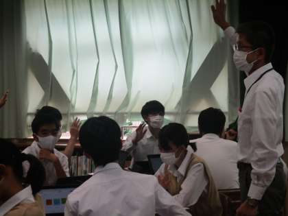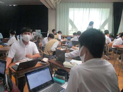 創価大学大学院教授の石丸先生、市の指導主事の先生、WEBで保護者の皆様と先生たちが見守る中でも臆することなくいつもの姿で仲間や学年の先生たちと楽しそうな話し合い、前向きな意見、立派でした。