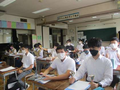 日本語学級 素晴らしい集中力で課題に取り組む生徒を見守る先生。